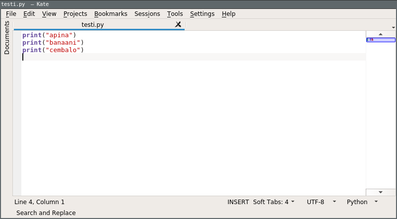 joka on kirjoitettu Kate-editorilla Linuxissa.