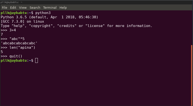 Pääset interaktiiviseen tilaan kirjoittamalla pelkän komennon python3.