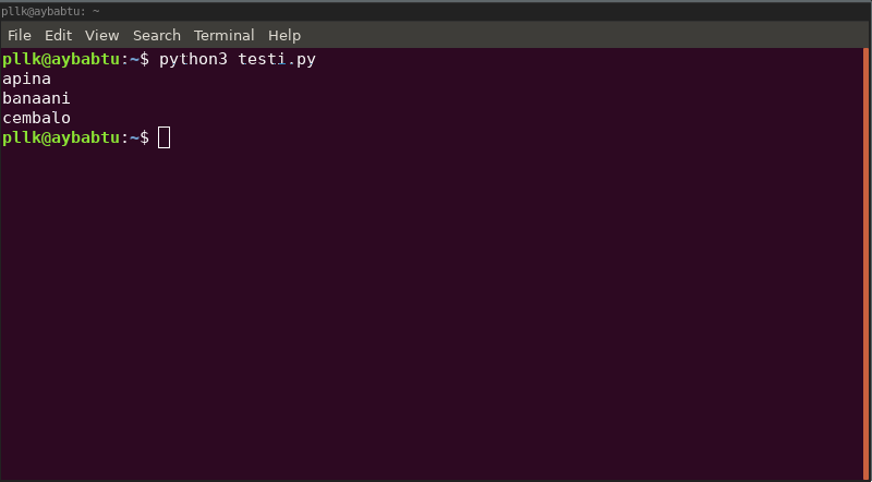Esimerkiksi seuraavassa kuvassa näkyy ohjelma testi.py,